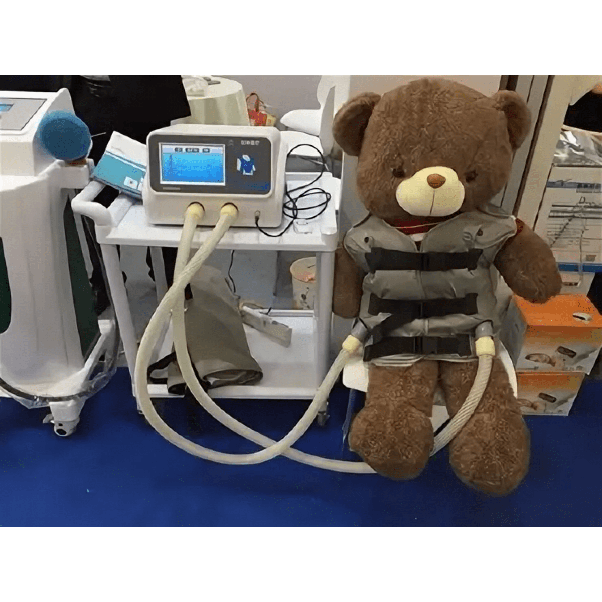 Система работает за счёт воздушного компрессора, который подаёт короткие импульсы воздуха в жилет. Жилет быстро раздувается и сдувается, создавая мягкое вибрационное давление на грудную клетку. Такое воздействие разжижает мокроту, ускоряет её движение к верхним дыхательным путям и формирует эффект «мини-кашля», который помогает организму выводить слизь естественным образом. Благодаря этому процедура становится эффективной альтернативой ручному перкуссионному массажу и позволяет проводить терапию дома без посещения стационара.