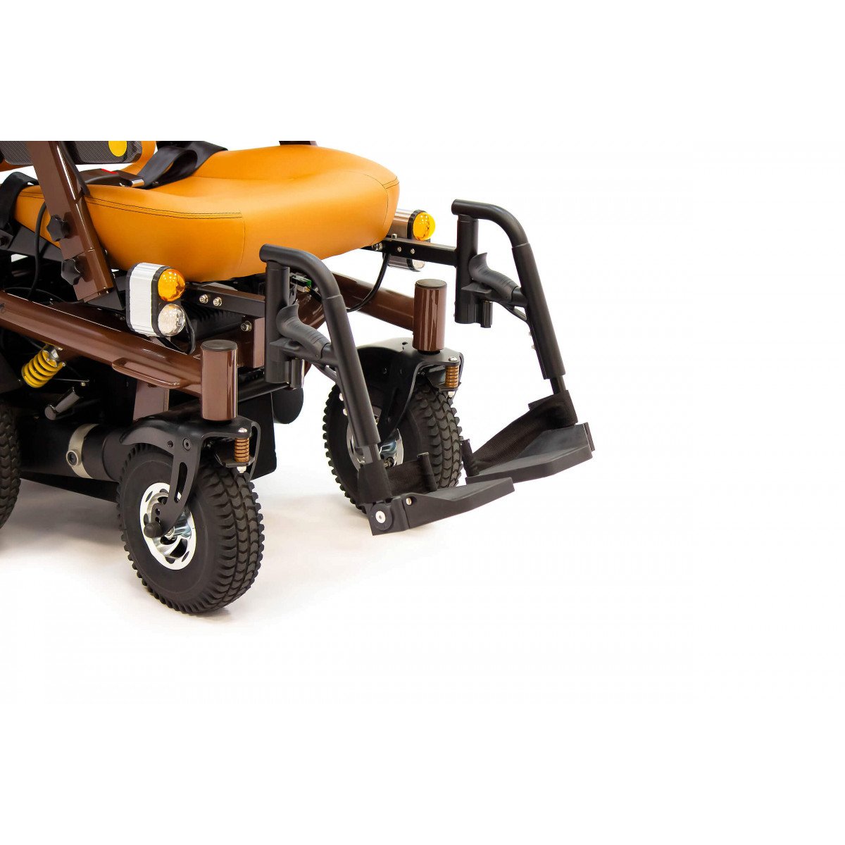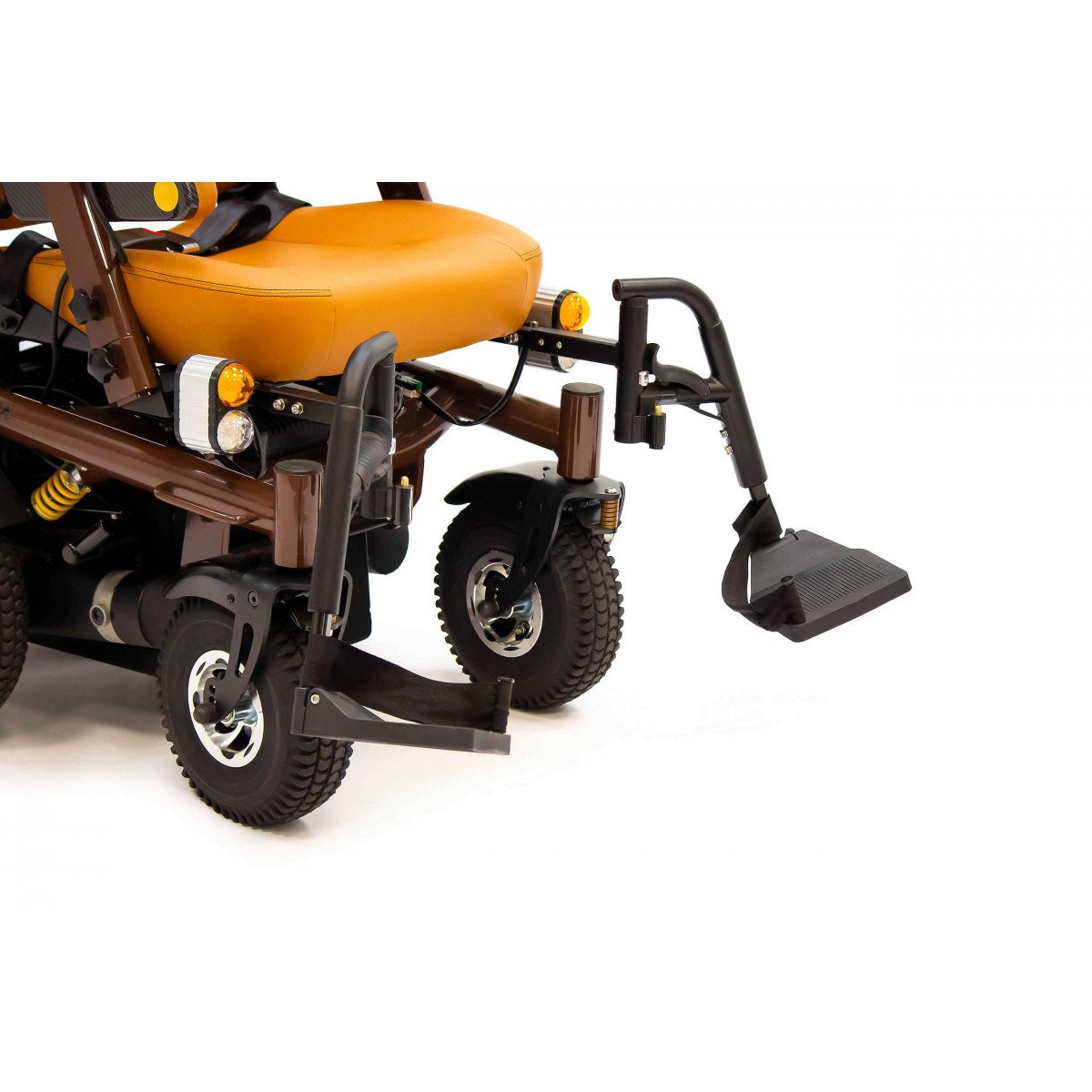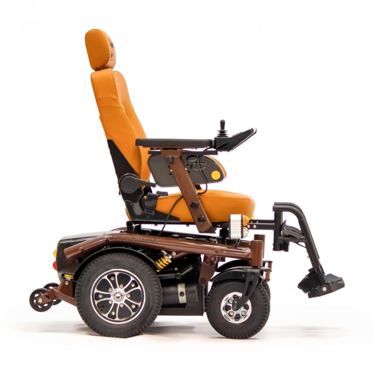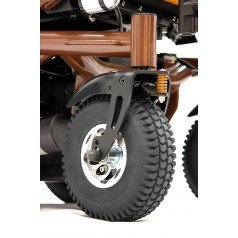 Внутри кресла-коляски реализованы мощные 500-ваттные моторы, которые установлены по одному на каждое заднее колесо. Такое решение обеспечивает высокую манёвренность и достаточную мощность для преодоления различных препятствий. В паре с ними работают энергоёмкие свинцово-кислотные аккумуляторы на 75 АН, которые гарантируют значительный запас хода. В активном режиме управления такое сочетание позволяет пользователю без особых усилий проехать до 40 км по асфальтовым дорогам.