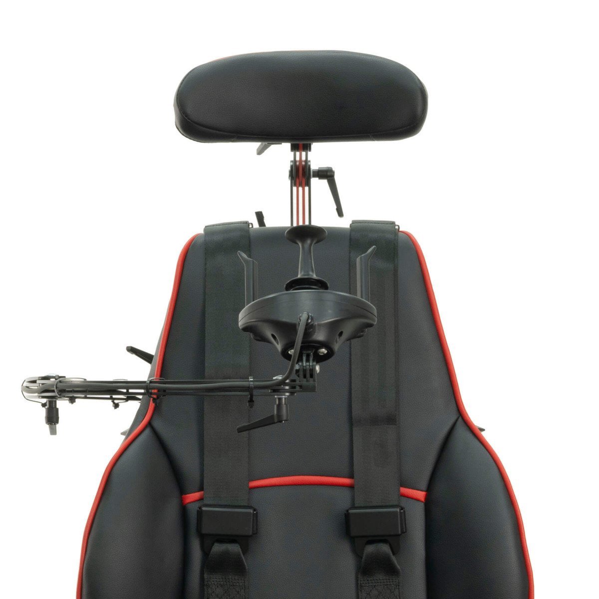 Система состоит из пульта управления подбородком и кронштейна, зафиксированного на задней части спинки кресла. Кронштейн имеет регулировку по высоте, по вылету и в поперечном направлении