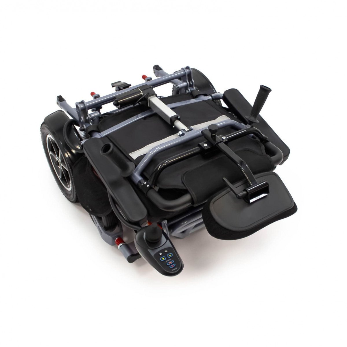На контроллере, который можно расположить слева или справа от пользователя, находятся кнопки звукового сигнала, переключения скоростных режимов, а также кнопки регулировки положения пользователя и джойстик для управления коляской. Также в комплекте идет пульт управления, на котором расположены те же кнопки, что и на контроллере.