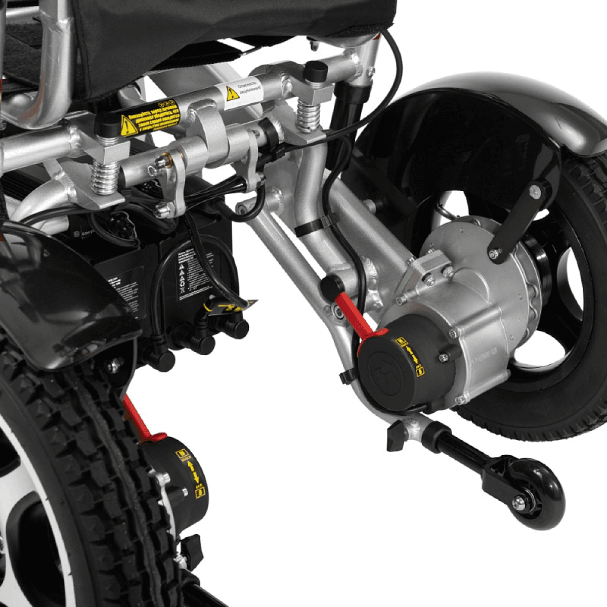 Регулируемая по жёсткости пружинная подвеска сиденья, а также амортизаторы передних колёс, защищают позвоночник пользователя от резких толчков и эффективно гасят вибрации во время движения. Плавность хода позволяет безболезненно перемещаться как по городским дорогам, так и по грунтовым поверхностям.
