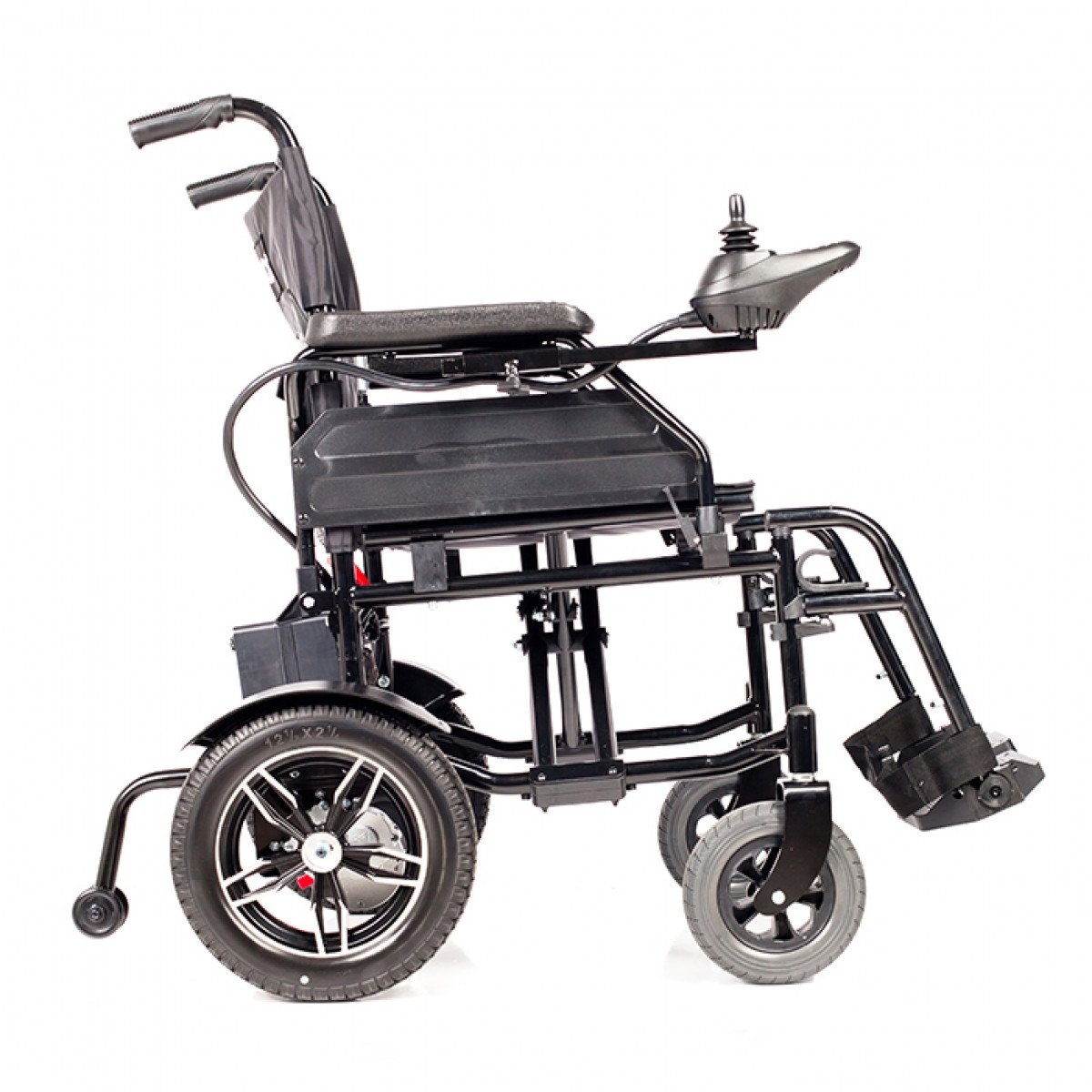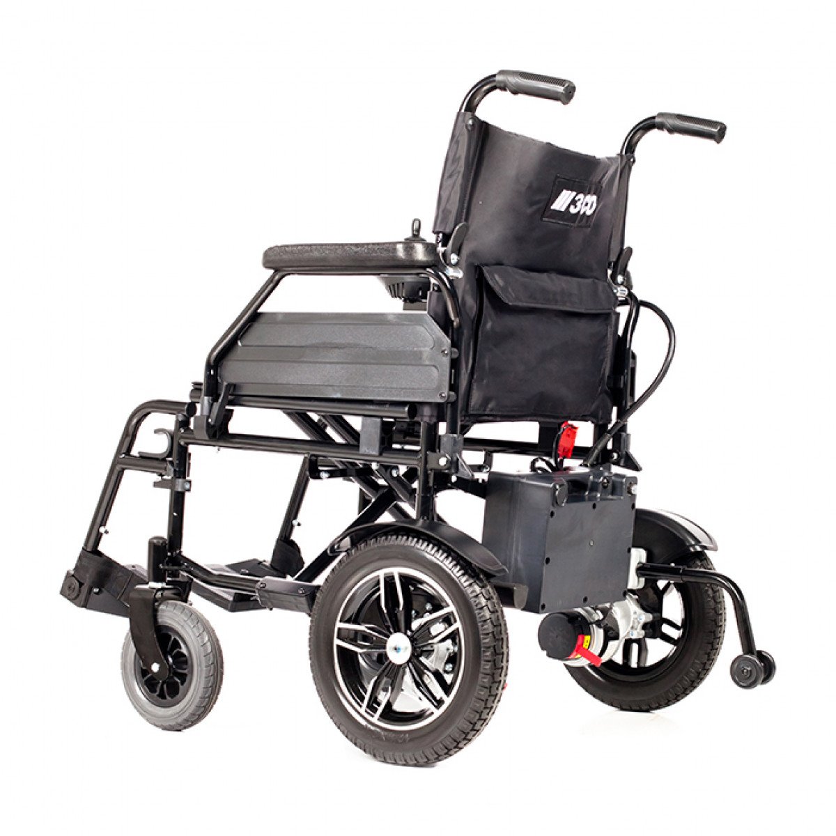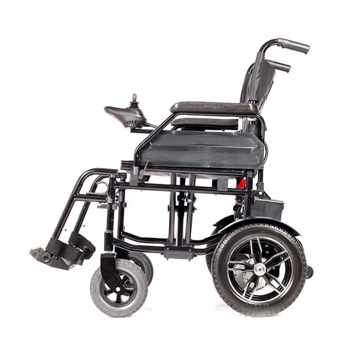 Коляска проста в использовании: пульт управления можно установить с удобной стороны и настроить по вылету, а при отключении электропривода модель легко переводится в режим сопровождения. Подлокотники и подножки — съёмно-откидные, что упрощает пересаживание и настройку под пользователя. Спинка складная, а сиденье выполнено из прочного материала, который не растягивается и легко очищается.