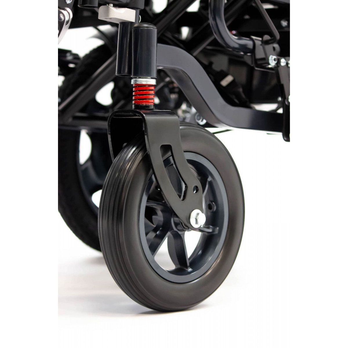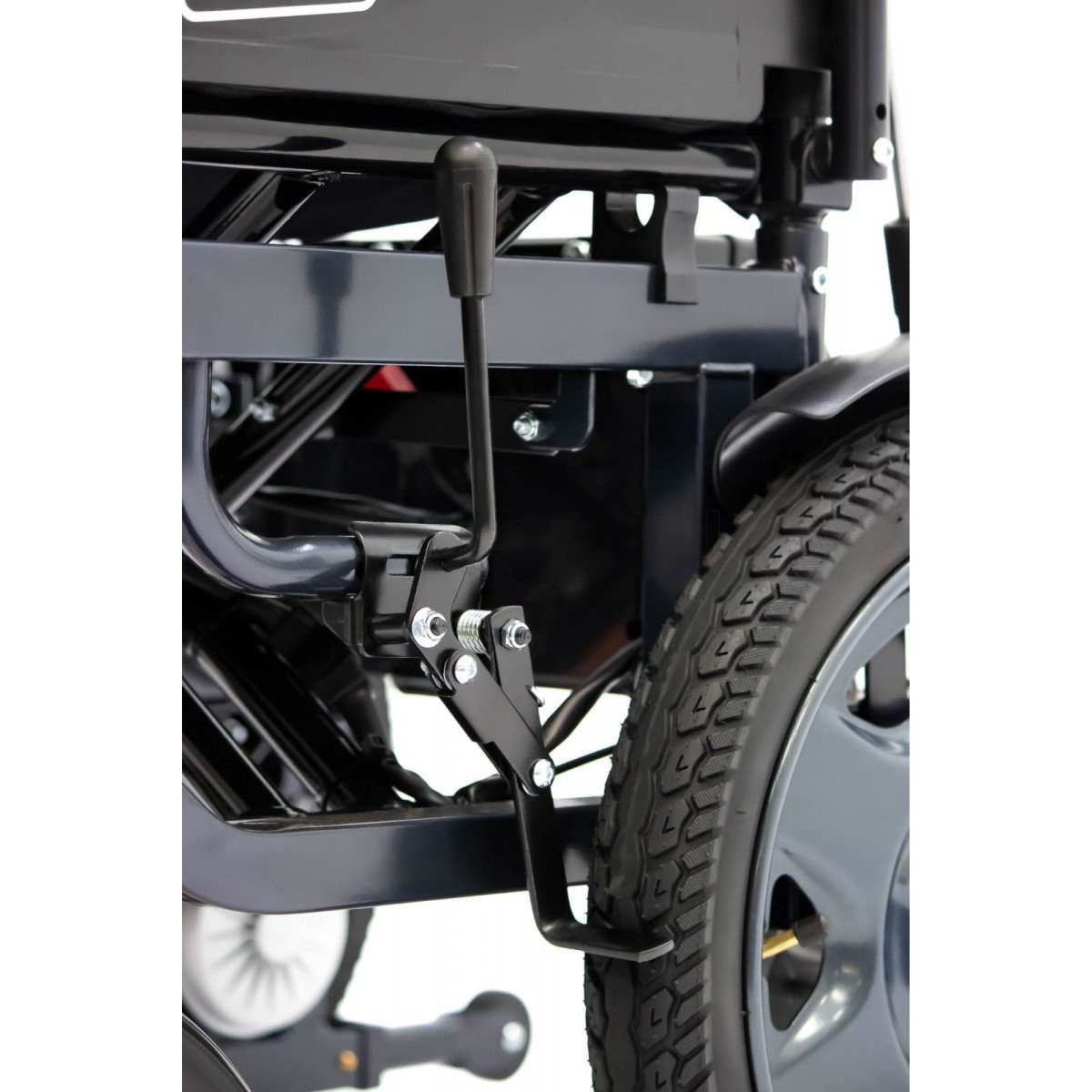 Модель оборудована системой защиты от опрокидывания и регулируемыми подножками, которые можно поднять для отдыха в горизонтальном положении. Управление простое и интуитивное — с помощью джойстика. Контроллер можно установить с любой стороны, а встроенный фонарик с USB-разъёмом позволит зарядить телефон или осветить путь в тёмное время суток.
