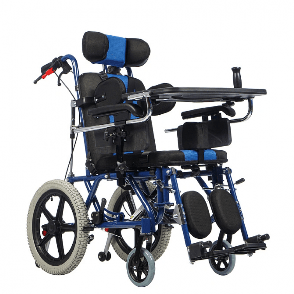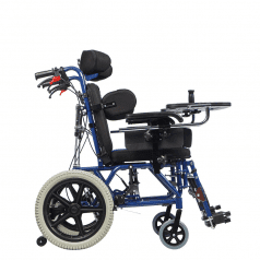 В комплекте с коляской идет съёмный столик, который оснащён антиспастической ручкой. Столик обеспечивает необходимую поддержку верхней части туловища, что способствует общей стабильности и комфортному положению ребёнка. Антиспастическая ручка активно помогает снижать повышенный тонус мышц.