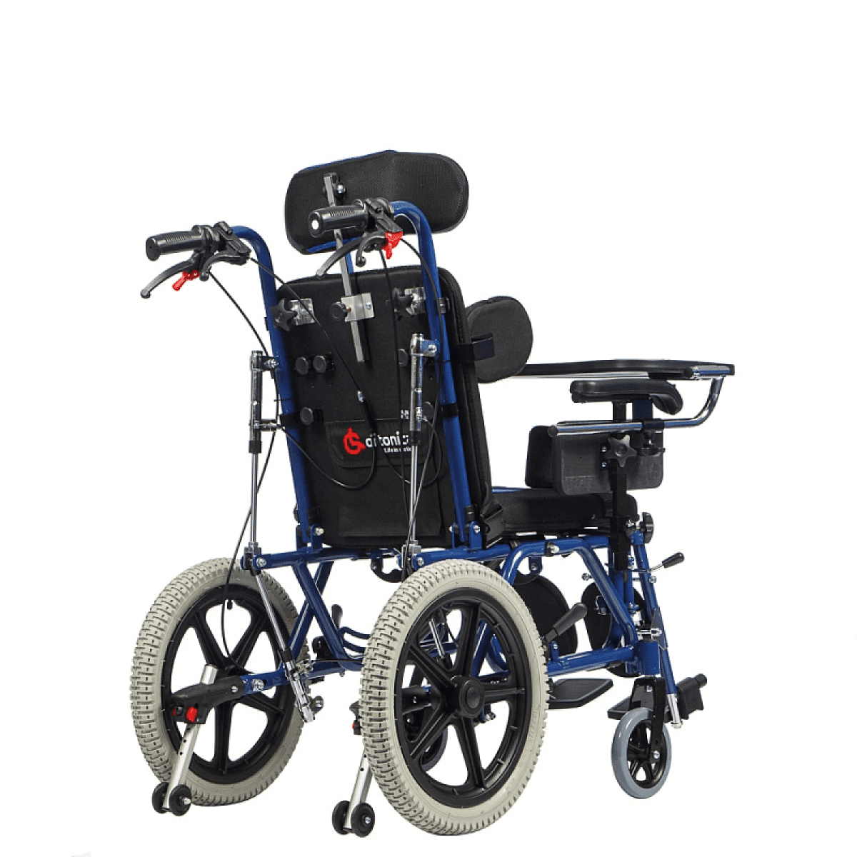 - Съёмные колёсные антиопрокидыватели с упором для сопровождающего лица регулируются по высоте