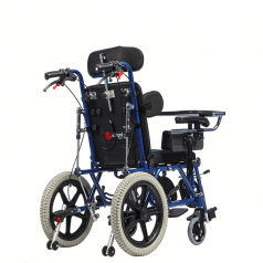 Кресло-коляска для инвалидов Ortonica Olvia 300 (Ортоника Олвия 300), управляемая сопровождающим лицом, предназначена для передвижения детей с ограниченными возможностями. Для удобства сопровождающего лица ручки коляски оснащены рычагами для плавной регулировки угла наклона как спинки, так и сиденья. Также на ручках предусмотрена система торможения. Кресло-коляска дополнительно оборудована необходимыми поддержками и фиксаторами, которые помогают ребёнку оставаться в безопасном и удобном положении во время передвижения.