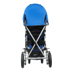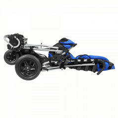 Кроме того, кресло-коляска обладает складной конструкцией в форме «трости». Такой дизайн позволяет легко складывать коляску и помещать её в автомобиль или хранить в квартире, занимая минимум места.