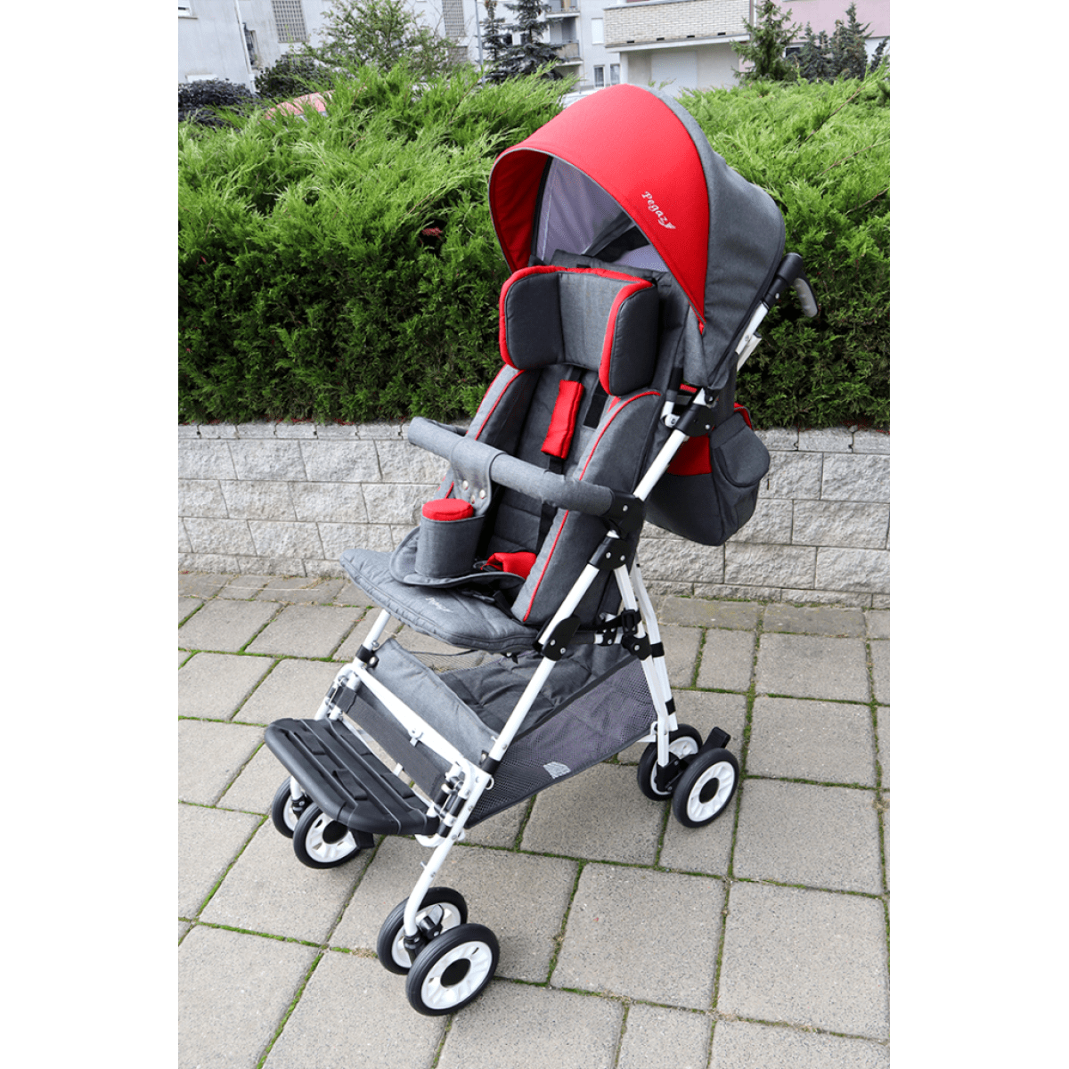 Сиденье и спинка коляски регулируются по глубине, высоте и углу наклона — Pegaz буквально «растёт» вместе с ребёнком. Подставка для ног и мягкие ремни фиксации обеспечивают правильную посадку и безопасность. Отдельная амортизация на каждом колесе делает движение плавным, а стояночный тормоз гарантирует устойчивость на остановках.