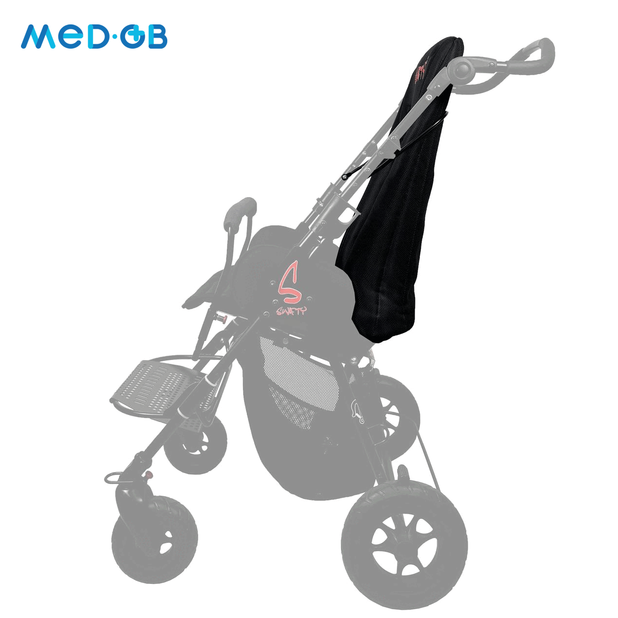 Сиденье и спинка коляски изготовлены из перфорированного гипоаллергенного материала, что минимизирует риск возникновения аллергических реакций. Этот материал легко очищается, благодаря чему за ним просто ухаживать — нет необходимости использовать специальные чистящие средства, что удобно для родителей, опекунов и заботливых специалистов по реабилитации.