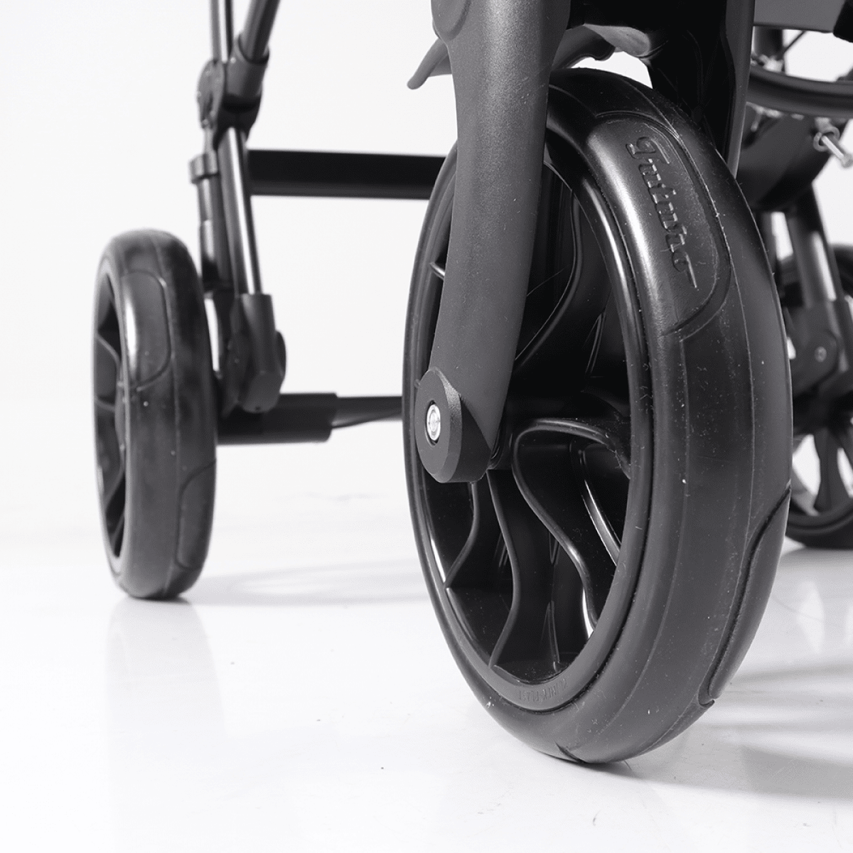 Конструкция коляски и съёмные колёса позволяют складывать её до компактных размеров. Центральный тормоз заднего колеса добавляет дополнительный уровень безопасности при остановке, а также обеспечивает надёжность во время посадки и высадки ребёнка.