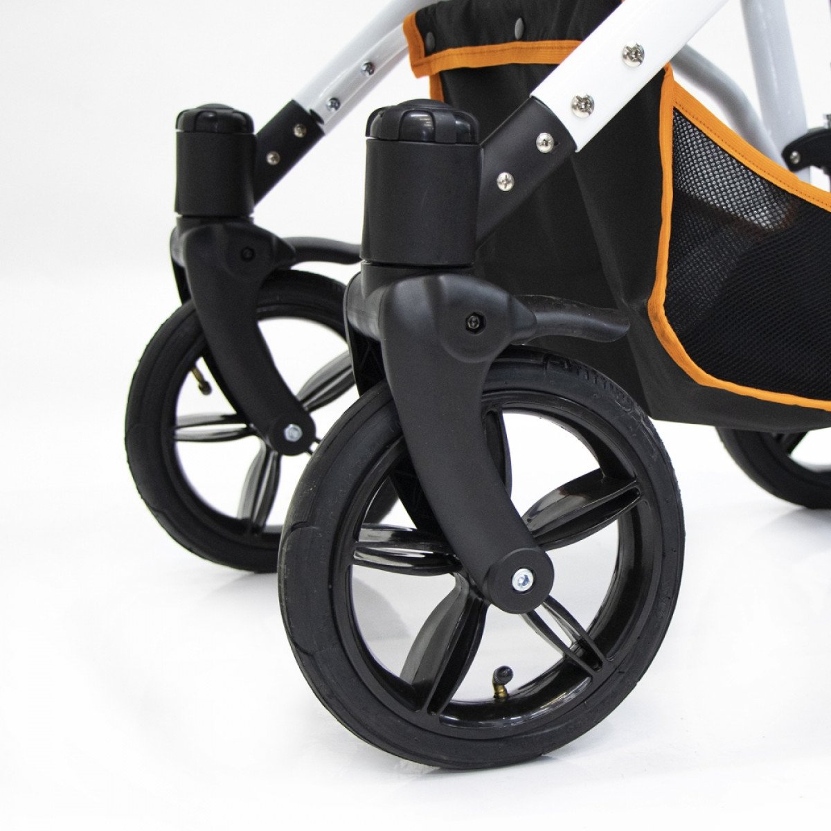 Коляска оснащена механизмом складывания типа «книжка». Для того чтобы сложить коляску, достаточно выполнить несколько простых шагов: снять быстросъёмное сиденье с рамы, нажать на фиксаторы, расположенные на раме, и аккуратно сложить коляску. Это позволяет быстро и без труда подготовить её к транспортировке или хранению.