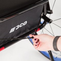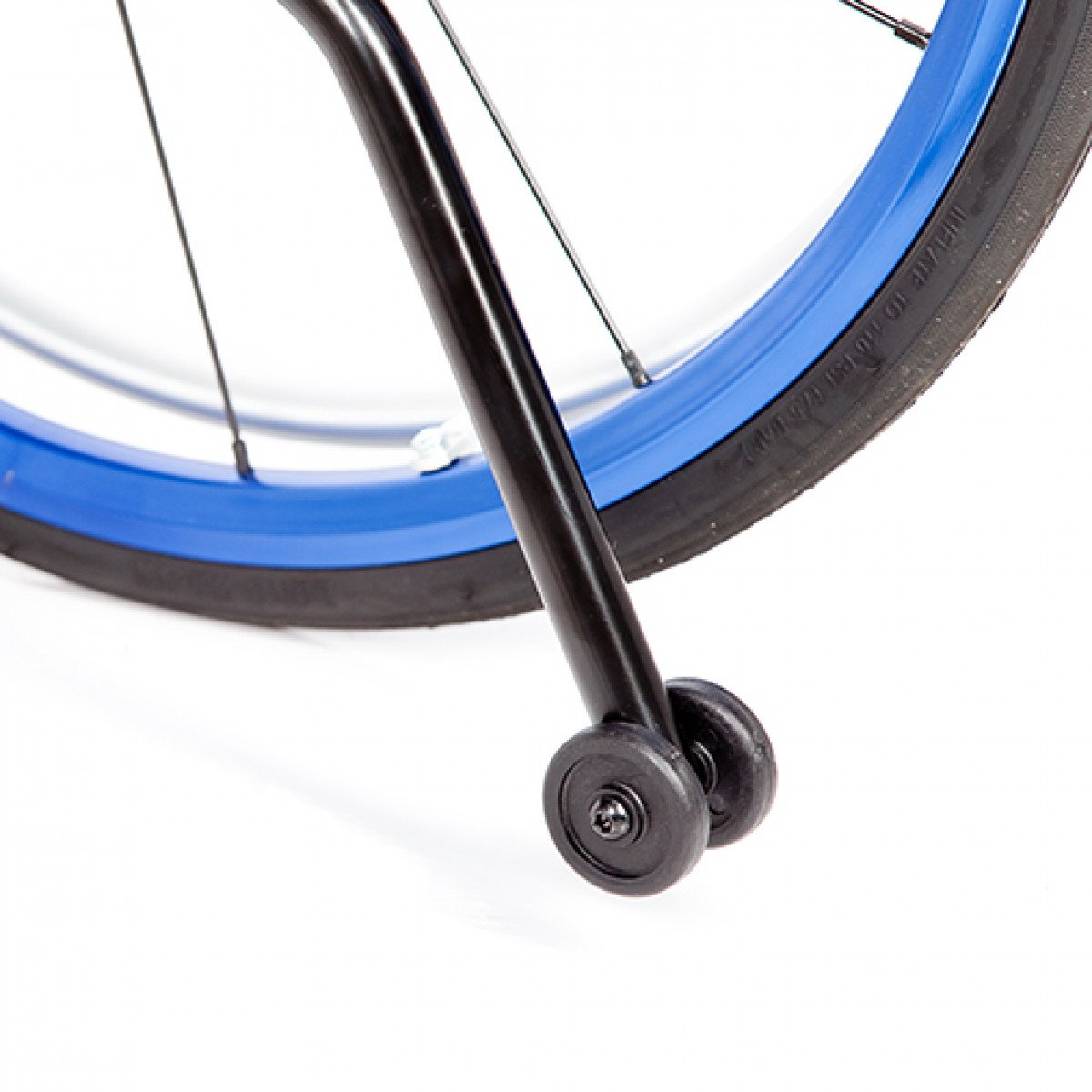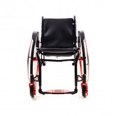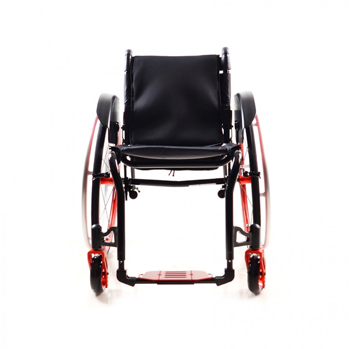 Передние колёса — цельнолитые, задние — быстросъёмные, доступны в вариантах с цельнолитыми или пневматическими шинами. Обода с антискользящим покрытием упрощают управление, а стояночные тормоза с регулировкой обеспечивают контроль при остановке. Для устойчивости предусмотрены антиопрокидыватели, а складные ручки с рельефными накладками делают управление для сопровождающего более удобным.