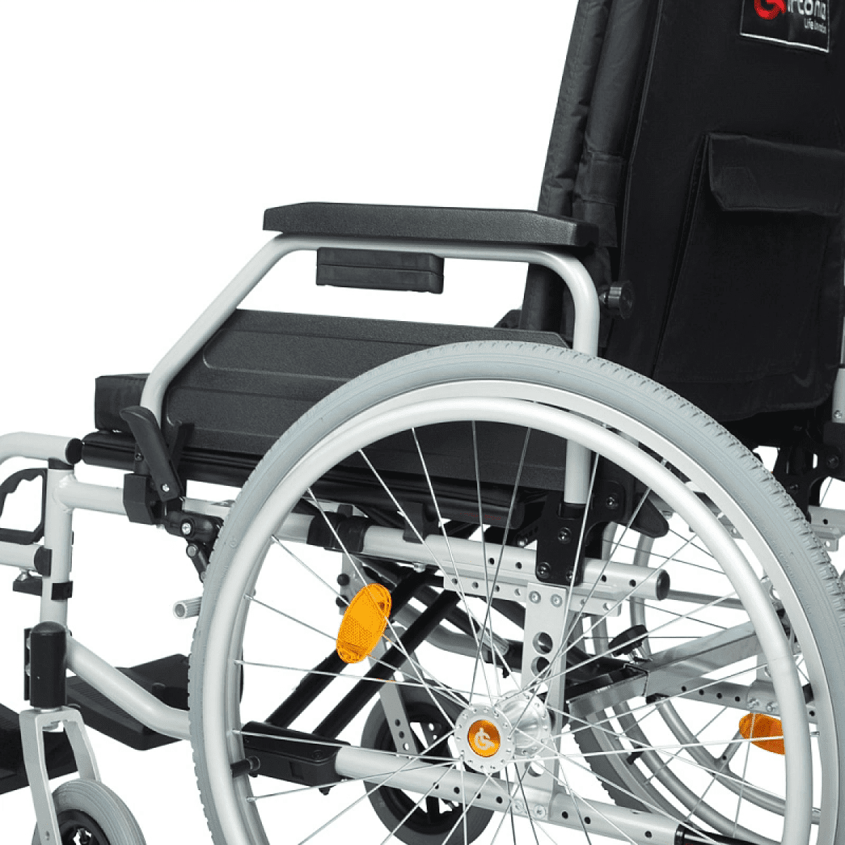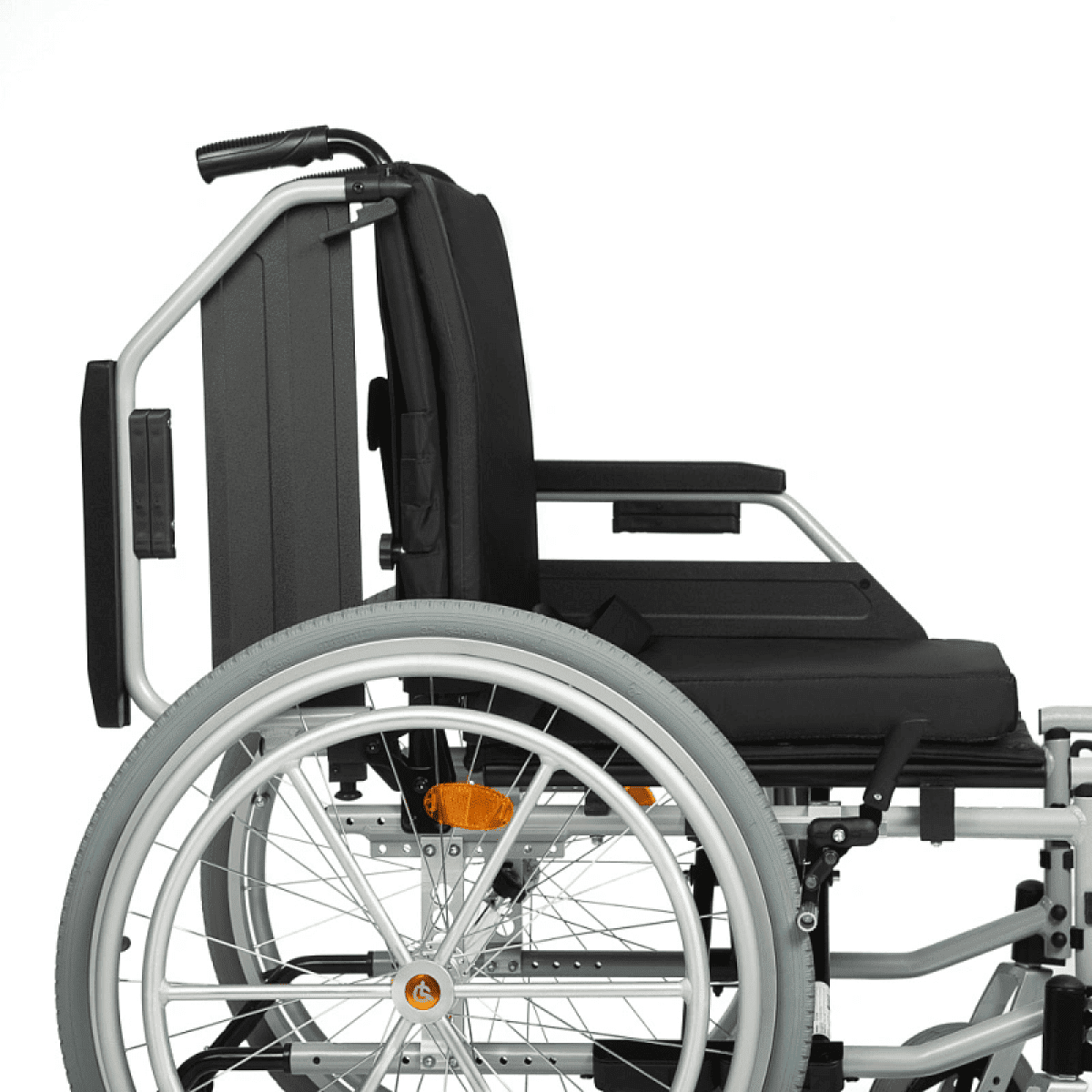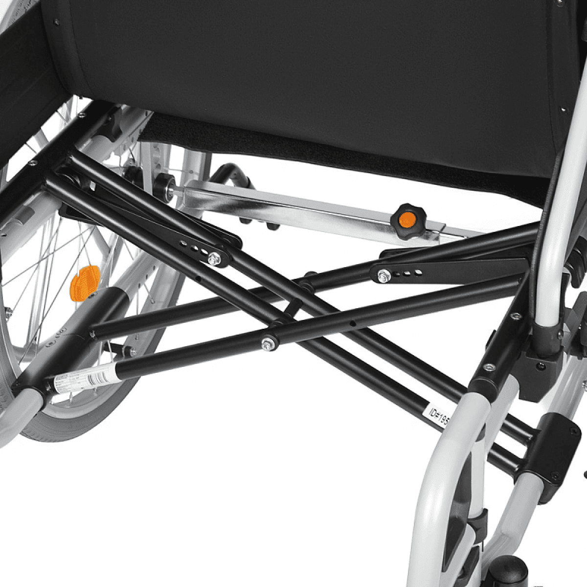 Расширенная ширина сиденья Control One 500 обеспечивает дополнительное пространство для пользователя, повышая уровень удобства и комфорта. Конструкция рамы этой коляски разработана с использованием усиленной двойной крестовины, что значительно увеличивает прочность всей конструкции.