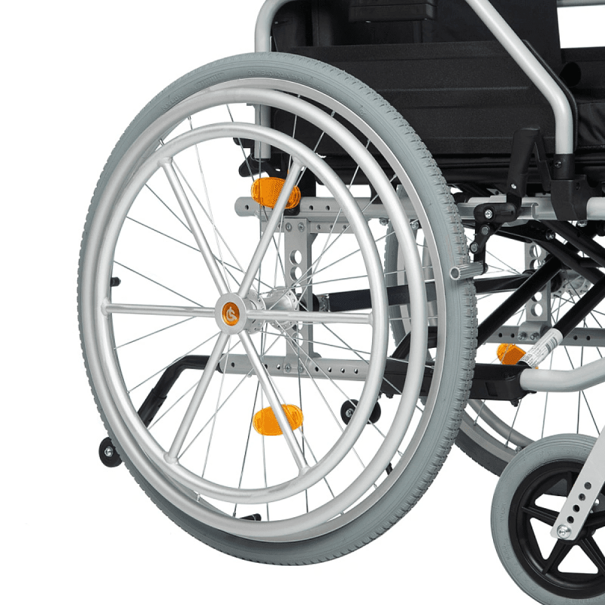 Кресло-коляска также предлагает различные варианты настройки. Возможность регулировки высоты сиденья и наклона спинки позволяет каждому настроить коляску под индивидуальные потребности. Для дополнительного удобства и безопасности предусмотрены надёжные тормоза, которые легко активируются даже одной рукой. Коляска также оснащена колёсами, которые обеспечивают отличную проходимость как по ровным поверхностям, так и по более сложным маршрутам. Поворотные передние колёса гарантируют высокую маневренность и лёгкость в управлении.