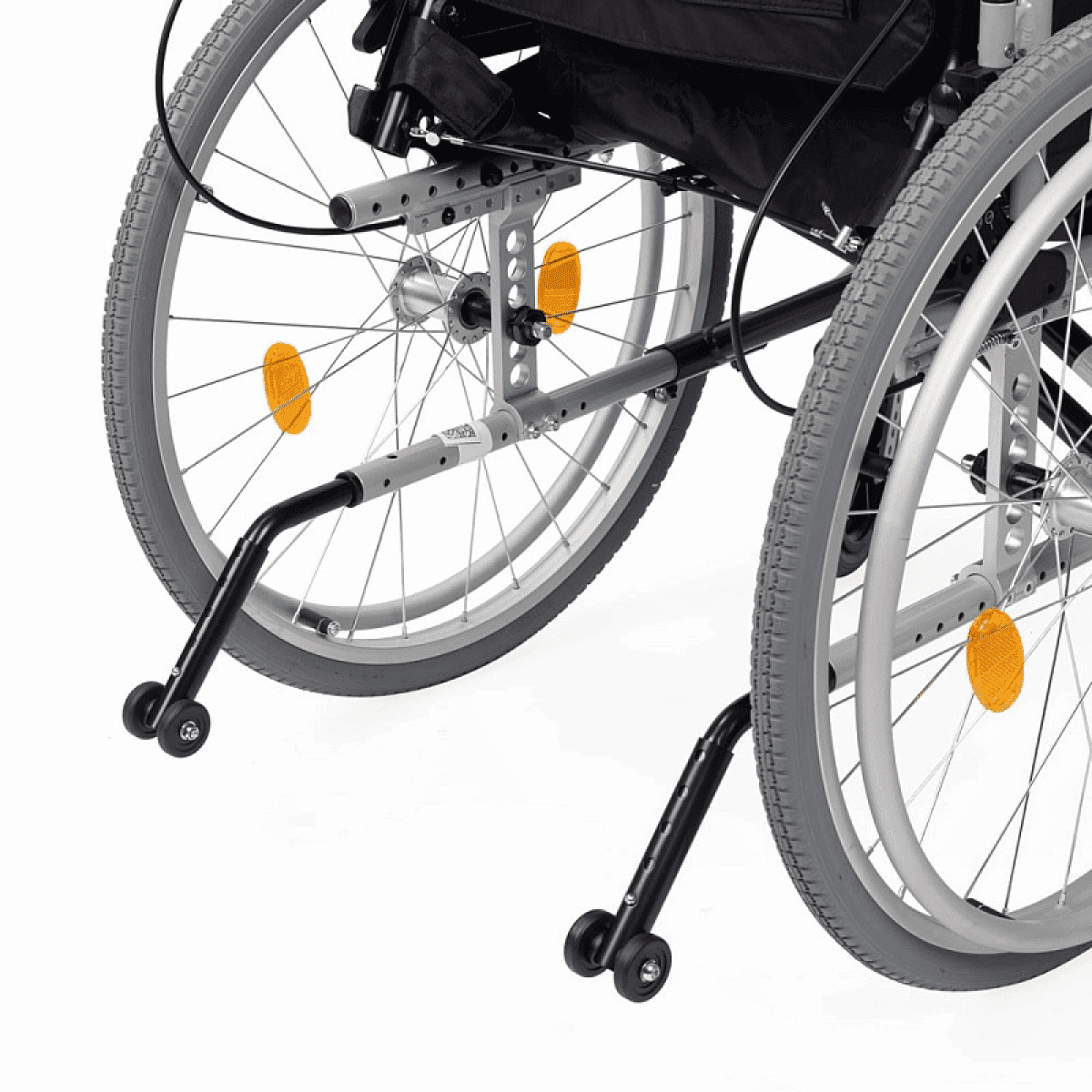 - Съёмные колесные антиопрокидыватели регулируются по высоте