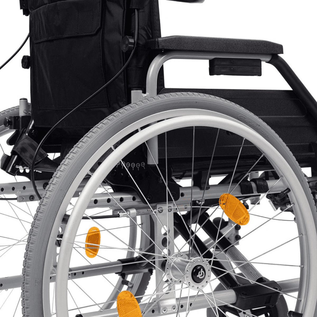 - Откидные, съёмные подлокотники регулируются по длине вылета и высоте (при помощи накладок)