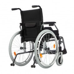 Съёмные и откидные подлокотники, а также откидные подножки облегчают пересаживание. Быстросъёмные задние колёса помогают компактно сложить коляску для перевозки.