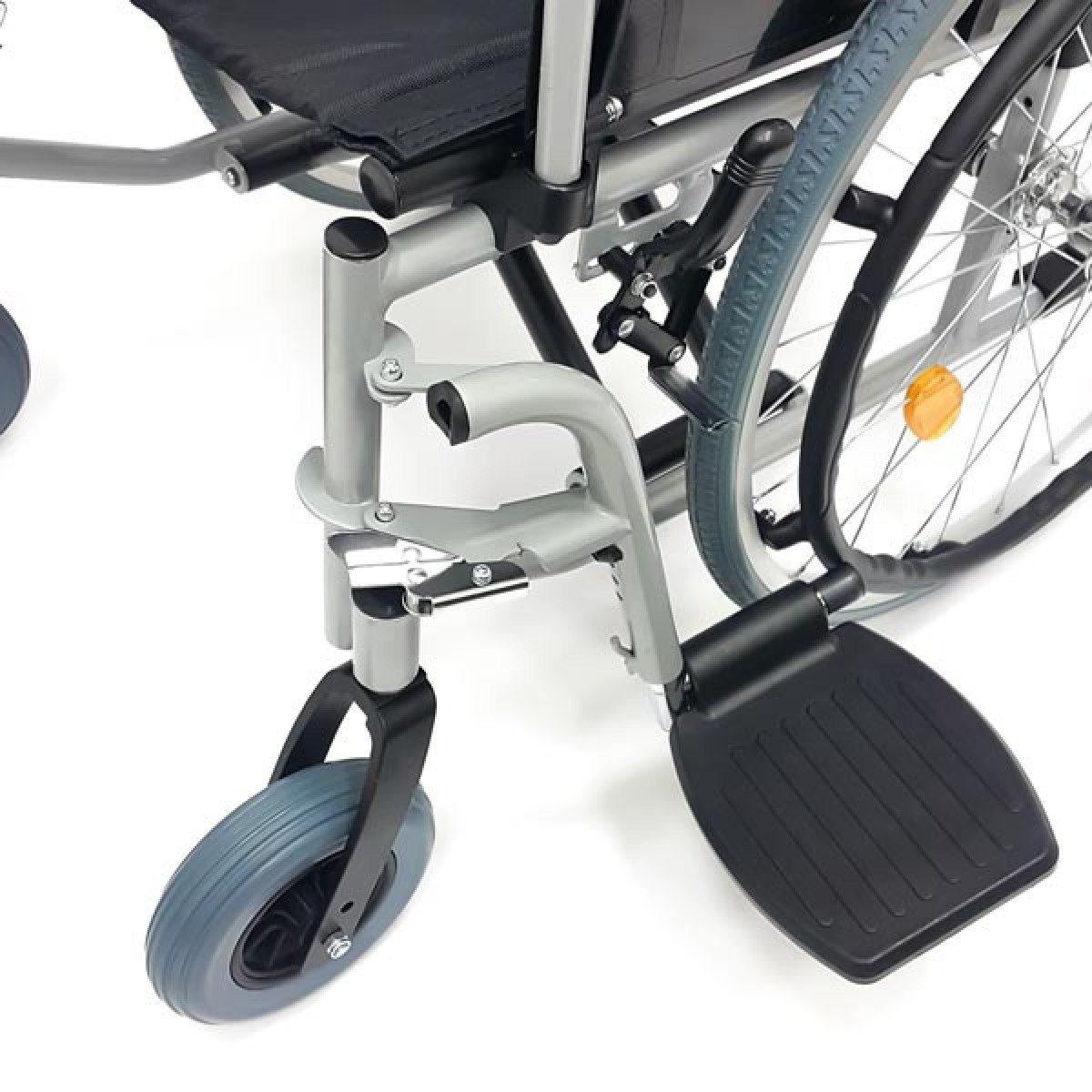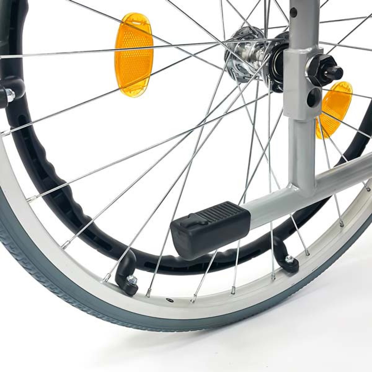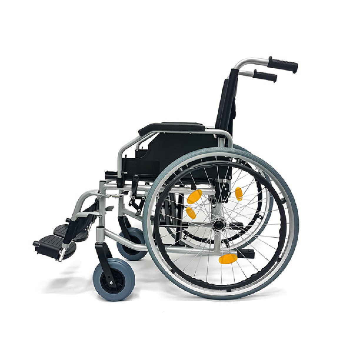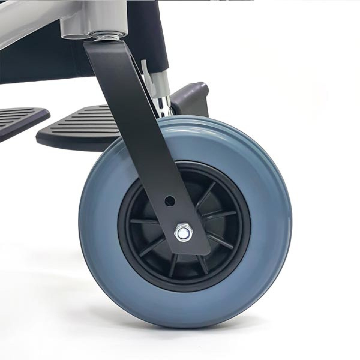 Модель отличается повышенной прочностью за счёт двойной крестовины и стальных труб с защитным порошковым напылением, которое надолго сохраняет аккуратный внешний вид. Особое внимание уделено ходовой части: задние колёса на классических металлических спицах оснащены быстросъёмными осями, что позволяет мгновенно демонтировать их для погрузки в багажник или замены. Использование качественных радиальных и опорных подшипников в передних и задних колёсах гарантирует лёгкий ход и отличную манёвренность даже в стеснённом пространстве.