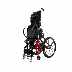 Механизм подъёма работает плавно и фиксируется в нужном положении, а ремни обеспечивают надёжную поддержку и безопасность. Вилки передних колёс регулируются по высоте, что помогает точнее настроить посадку. Обода с антискользящим покрытием упрощают управление, а стояночные тормоза обеспечивают контроль при остановке.