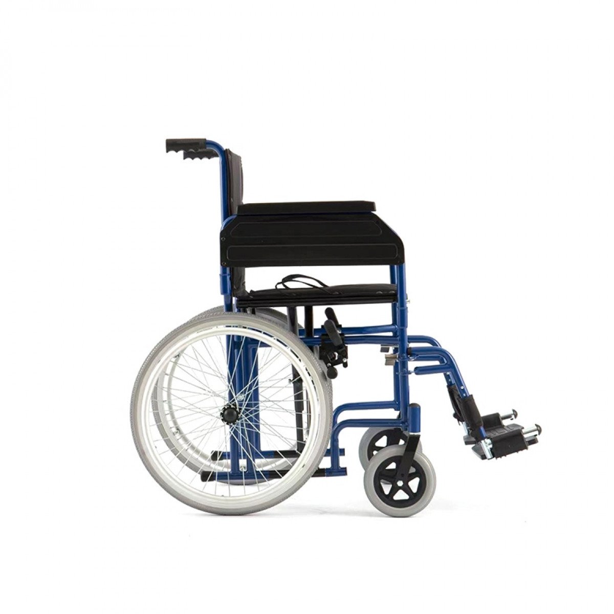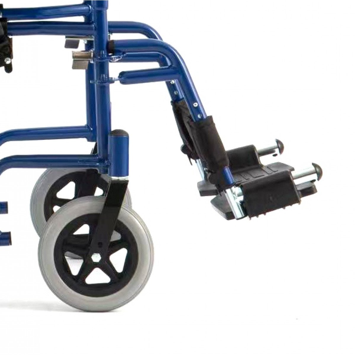 Рама выполнена из стали с антикоррозийным покрытием, что повышает долговечность конструкции. Коляска складывается без инструментов, а спинка оснащена ручками для сопровождающего. Сиденье регулируется по высоте в двух положениях благодаря регулировке вилки переднего колеса. Подлокотники откидываются или снимаются, чтобы упростить посадку и пересаживание.