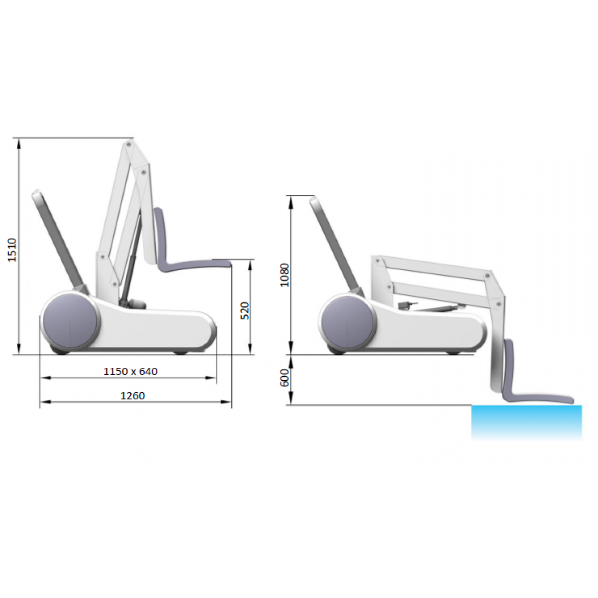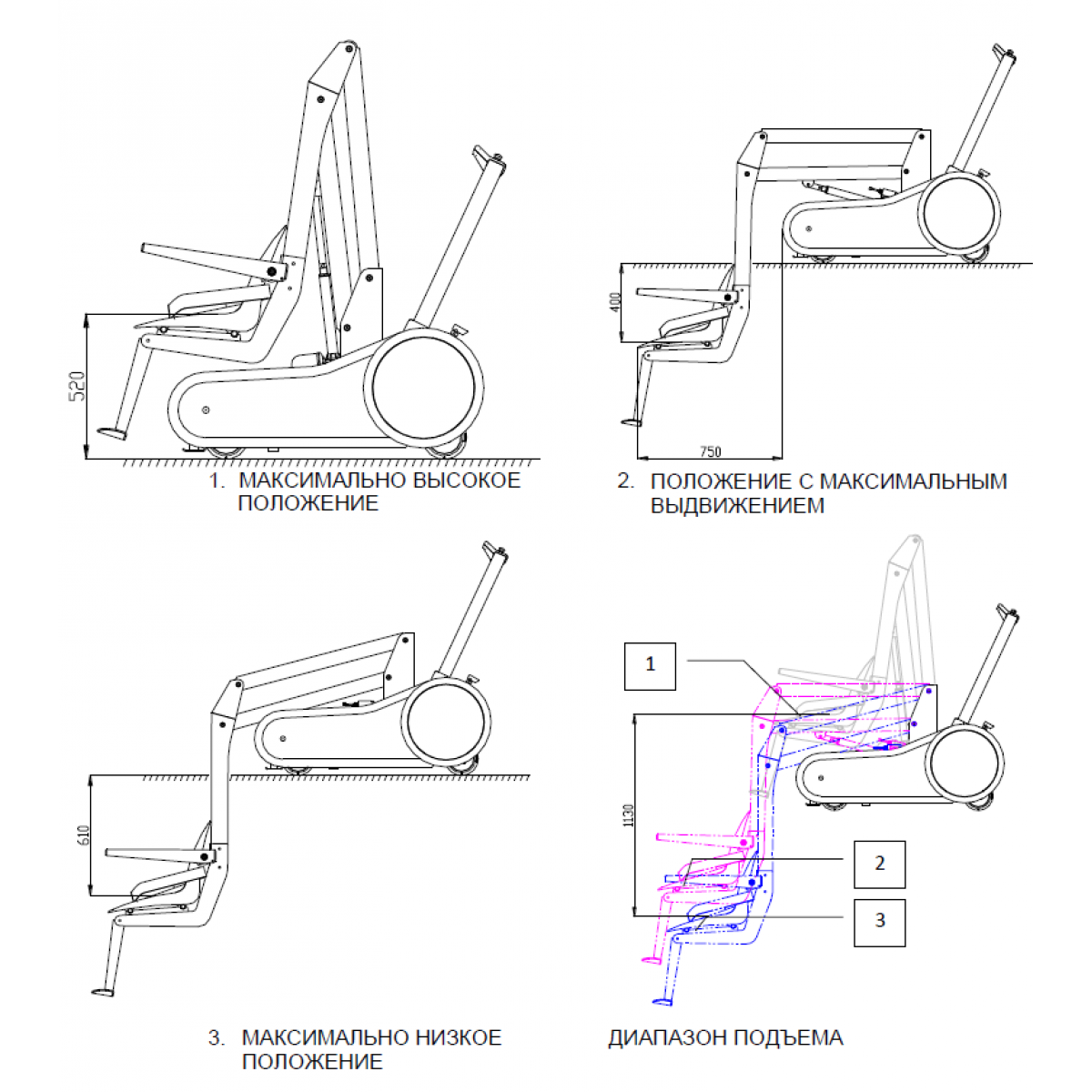 Подъёмник оснащён регулируемым сиденьем для комфортной посадки и панелью управления с кнопками подъёма, опускания и аварийной остановки. Перезаряжаемой батареи хватает примерно на 50 рабочих циклов, что обеспечивает автономность и удобство в повседневном использовании.