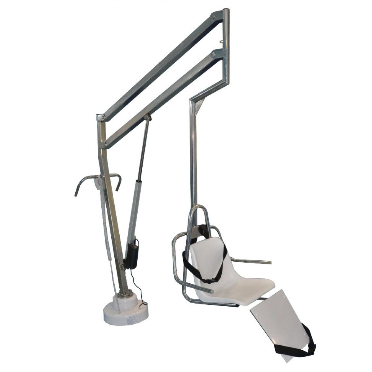Подъёмник изготавливается по индивидуальным параметрам заказчика, что позволяет адаптировать конструкцию под особенности помещения и бассейна. Основные элементы производятся из нержавеющей стали высокого качества, не подверженной коррозии и идеально подходящей для влажной среды. Мачта оснащена усиленной стабилизирующей балкой, которая удерживает кресло в равновесии и предотвращает качание во время подъёма и опускания.