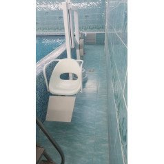 Подъёмник изготавливается индивидуально под параметры бассейна, а все ключевые элементы выполняются из нержавеющей стали, устойчивой к влаге и нагрузкам. Усиленная мачта удерживает кресло от раскачивания, обеспечивая стабильный и мягкий подъём. Конструкция поворачивается на 360°, что значительно упрощает посадку пользователя в кресло — сопровождающему не нужно прилагать лишних усилий, чтобы подвести или развернуть коляску.