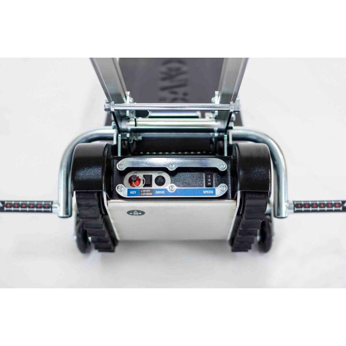 - Движение регулируется микропроцессором, поэтому даже при низком уровне заряда скорость остаётся стабильной