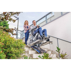 Лестничный гусеничный подъёмник SANO PTR XT 130 (Сано ПиТиАр ИксТи 130) — современное решение для безопасного перемещения людей в инвалидных колясках по лестницам. В отличие от классических моделей, он представляет собой мобильную платформу с пандусами на гусеничном ходу, что делает его универсальным даже для тяжёлых и электрических кресел-колясок.