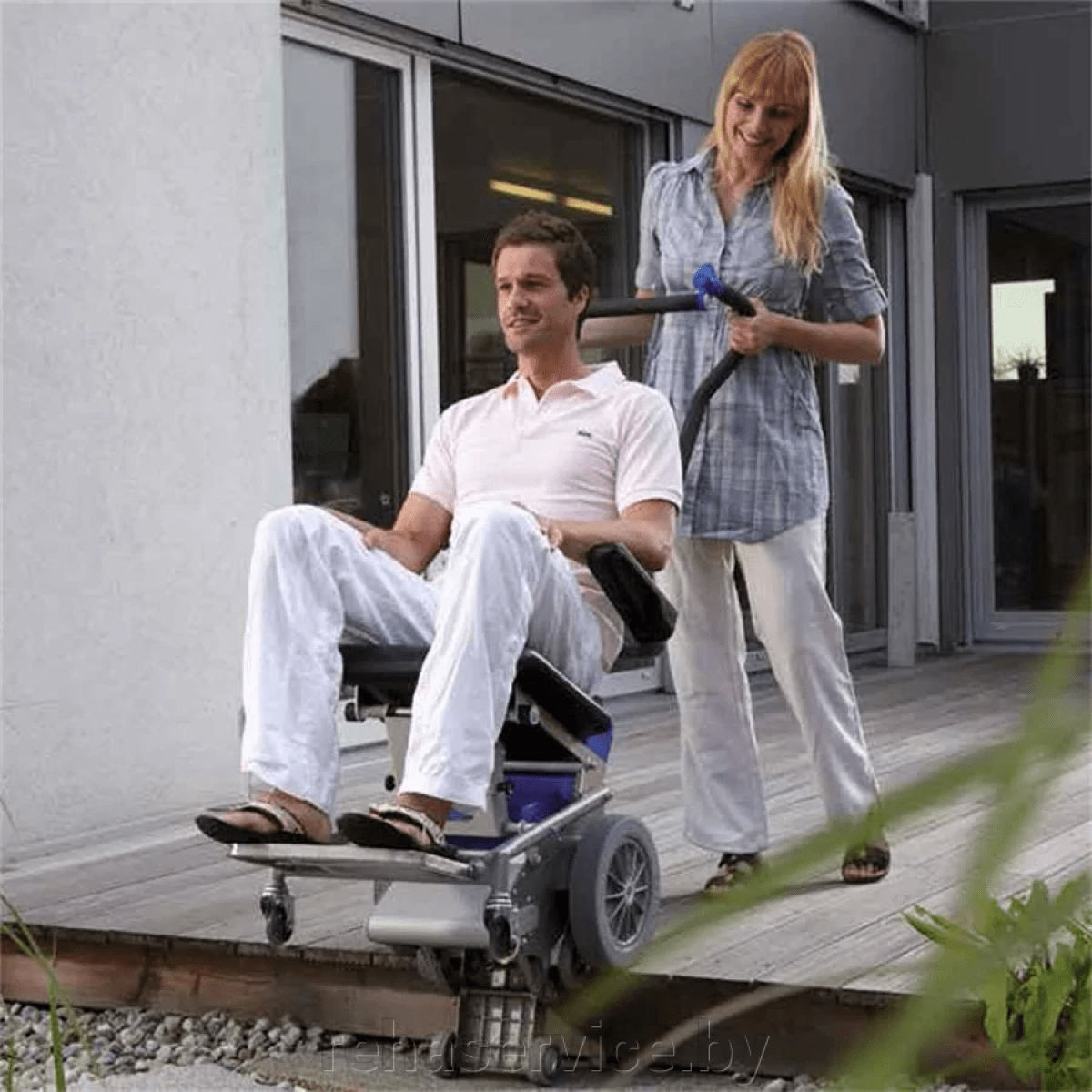 Подъёмник работает от аккумулятора и выдерживает нагрузку до 130 кг. Благодаря электронной системе контроля движения устройство двигается плавно, без рывков и вибраций. Конструкция из авиационного алюминия делает модель лёгкой, но прочной, а автоматическое торможение и защита от перегрузок гарантируют безопасность при использовании.