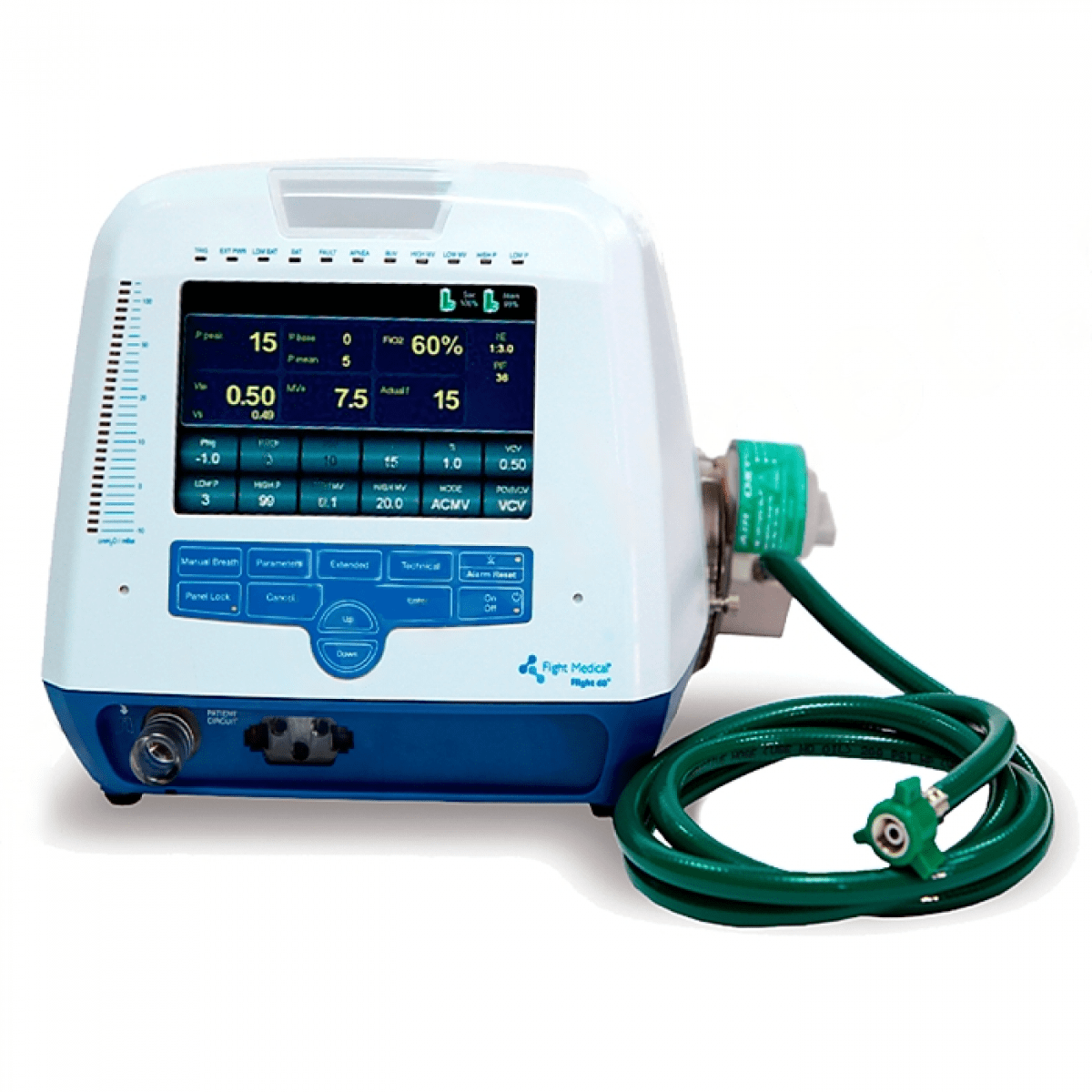 Аппарат искусственной вентиляции лёгких Flight Medical 60 (Флайт Медикал 60) — это надёжный и универсальный прибор для инвазивной и неинвазивной вентиляции, рассчитанный на работу в любых условиях: от реанимации и палат интенсивной терапии до скорой помощи.