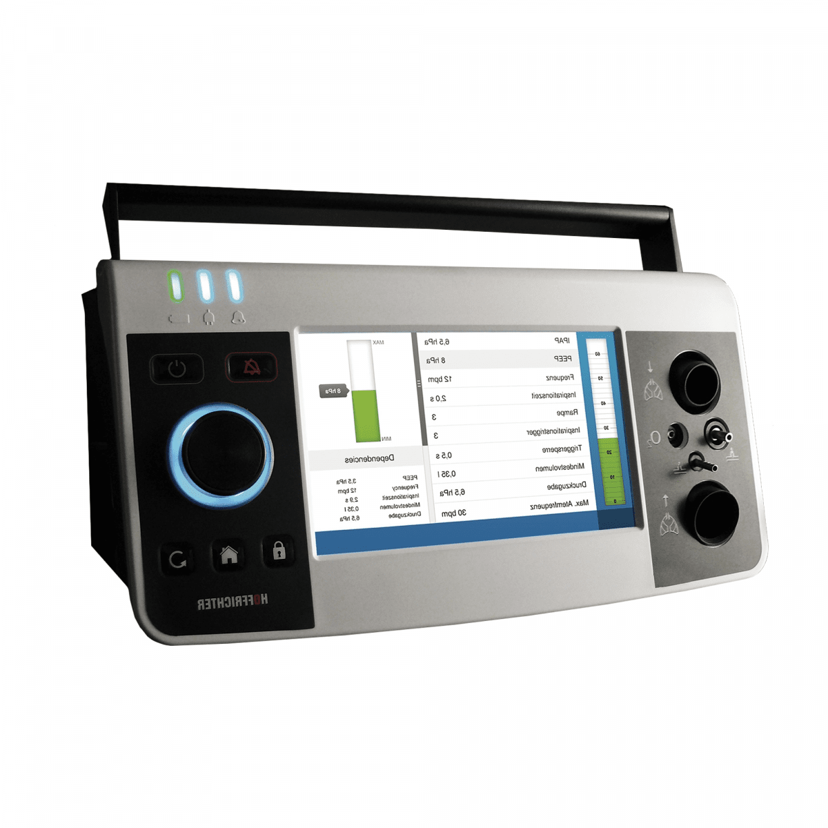 Hoffrichter Carat II Pro (Хоффрихтер Карат 2 Про) — профессиональный аппарат для респираторной поддержки, который используется в больницах, реанимациях, реабилитационных центрах и может применяться дома для длительной терапии. Он поддерживает как инвазивную, так и неинвазивную вентиляцию, обеспечивая стабильное и безопасное дыхание при состояниях любой сложности.