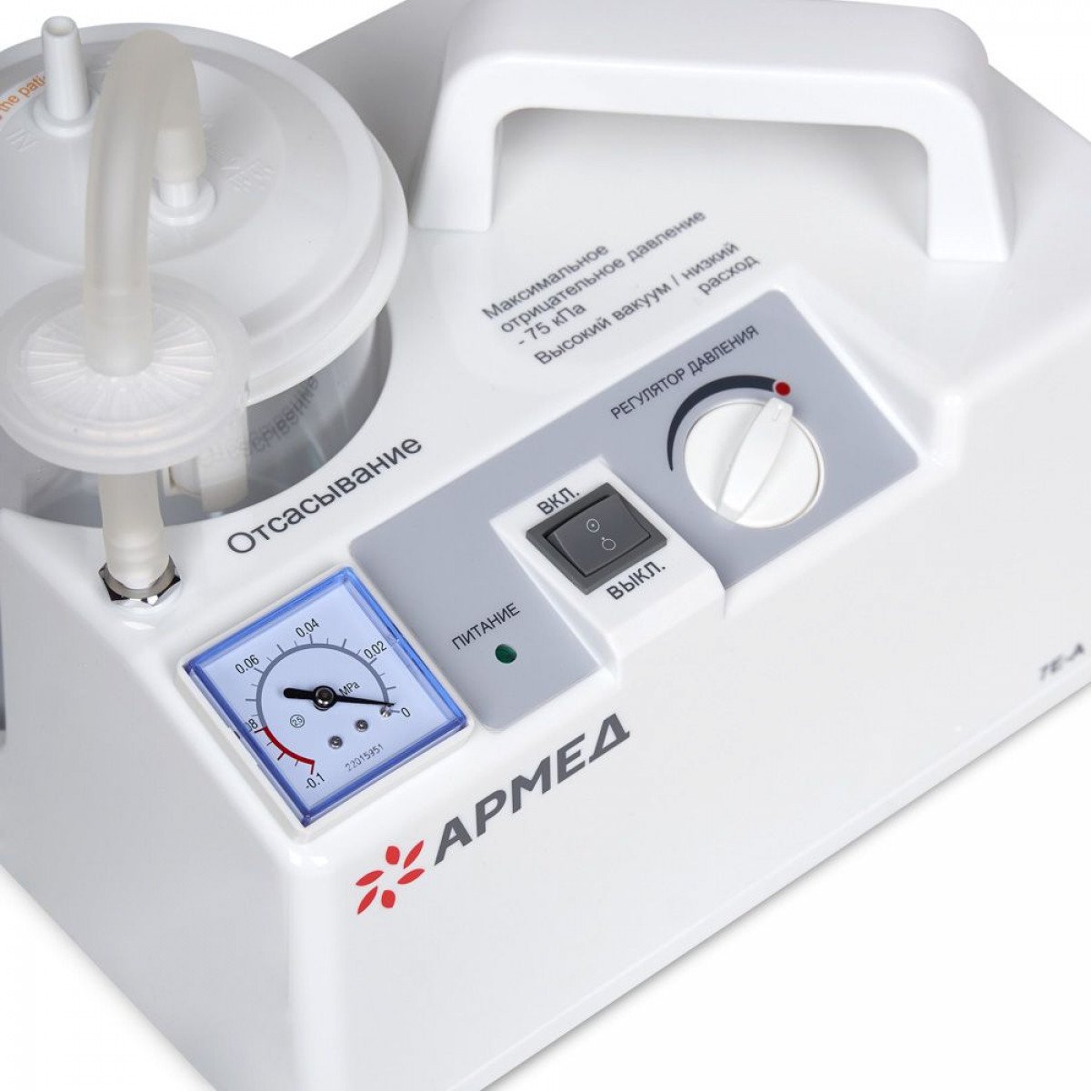 Работа с устройством максимально проста: включение происходит нажатием одной кнопки, а уровень интенсивности отсасывания регулируется плавным поворотом ручки. Благодаря этим функциям Armed 7E-А одинаково удобен как для профессионального медицинского персонала, так и для применения в условиях небольшой клиники или лаборатории.