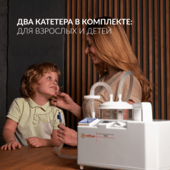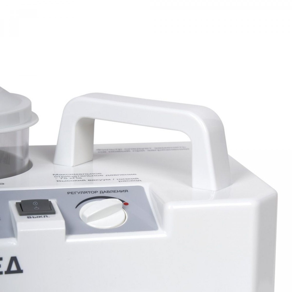 Корпус отсасывателя выполнен из прочного и легко моющегося пластика, что упрощает уход и продлевает срок службы прибора. Ёмкость-сборник оснащена клапаном, который предотвращает перелив жидкости, а встроенный антибактериальный фильтр обеспечивает дополнительную защиту от загрязнений.