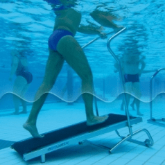 Небольшие габариты и сниженный вес делают эту дорожку удобным решением для бассейнов малого и среднего размера. Плотная двухслойная беговая лента обеспечивает стабильный и плавный ход, позволяя безопасно тренироваться как в щадящем реабилитационном режиме, так и в более активном формате. Механический принцип работы даёт полный контроль над нагрузкой и интенсивностью движения.