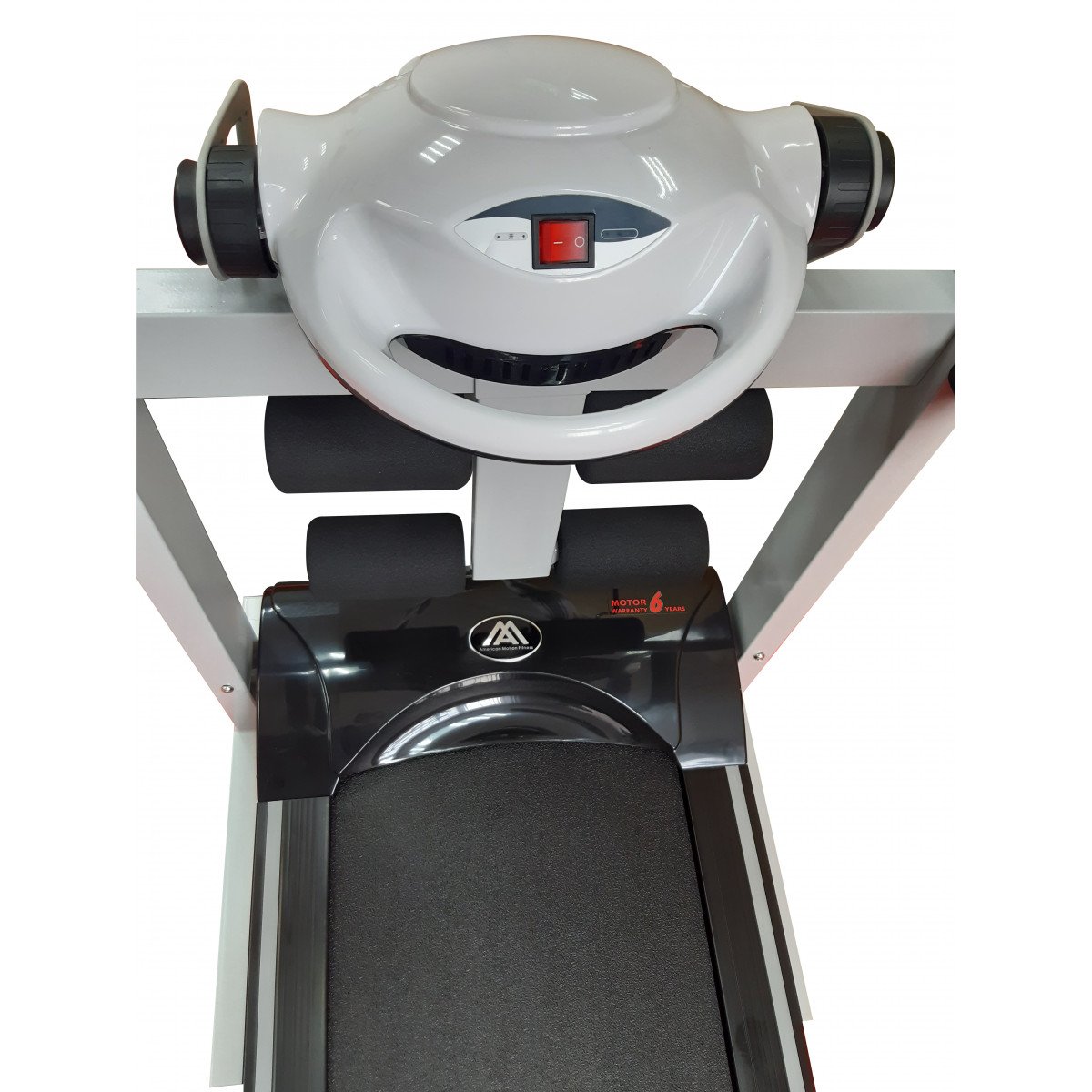 Беговая дорожка American Motion Fitness 8212 (Американ Моушен Фитнес 8212) с встроенным массажером и функцией прокачки пресса – это многофункциональный тренажер для проработки различных групп мышц, укрепления корпуса и улучшения фигуры. Встроенный массажер помогает подтянуть ягодицы и бедра, а стойка для прокачки пресса укрепляет как прямые, так и косые мышцы, а также мышцы спины, создавая прочный мышечный корсет.