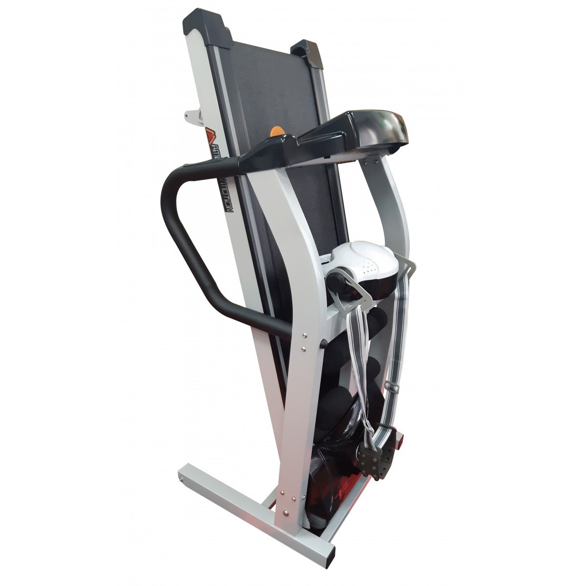 Устройство оснащено 12 встроенными программами, что позволяет выбрать наиболее подходящий вариант тренировки для проработки мышц с различным уровнем нагрузки. Вы также можете вручную регулировать угол наклона бегового полотна, выбирая 3 уровня наклона, что помогает имитировать подъем в гору и увеличить интенсивность тренировок. Тренажер легко собирается, оснащен транспортировочными роликами и складной конструкцией для удобства хранения. В комплекте с вибромассажёром идет антицеллюлитный массажно-ремень, повышающий эффективность тренировки.