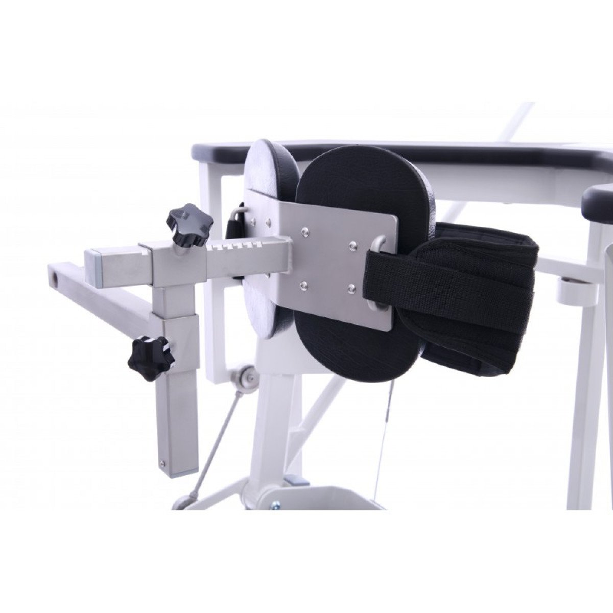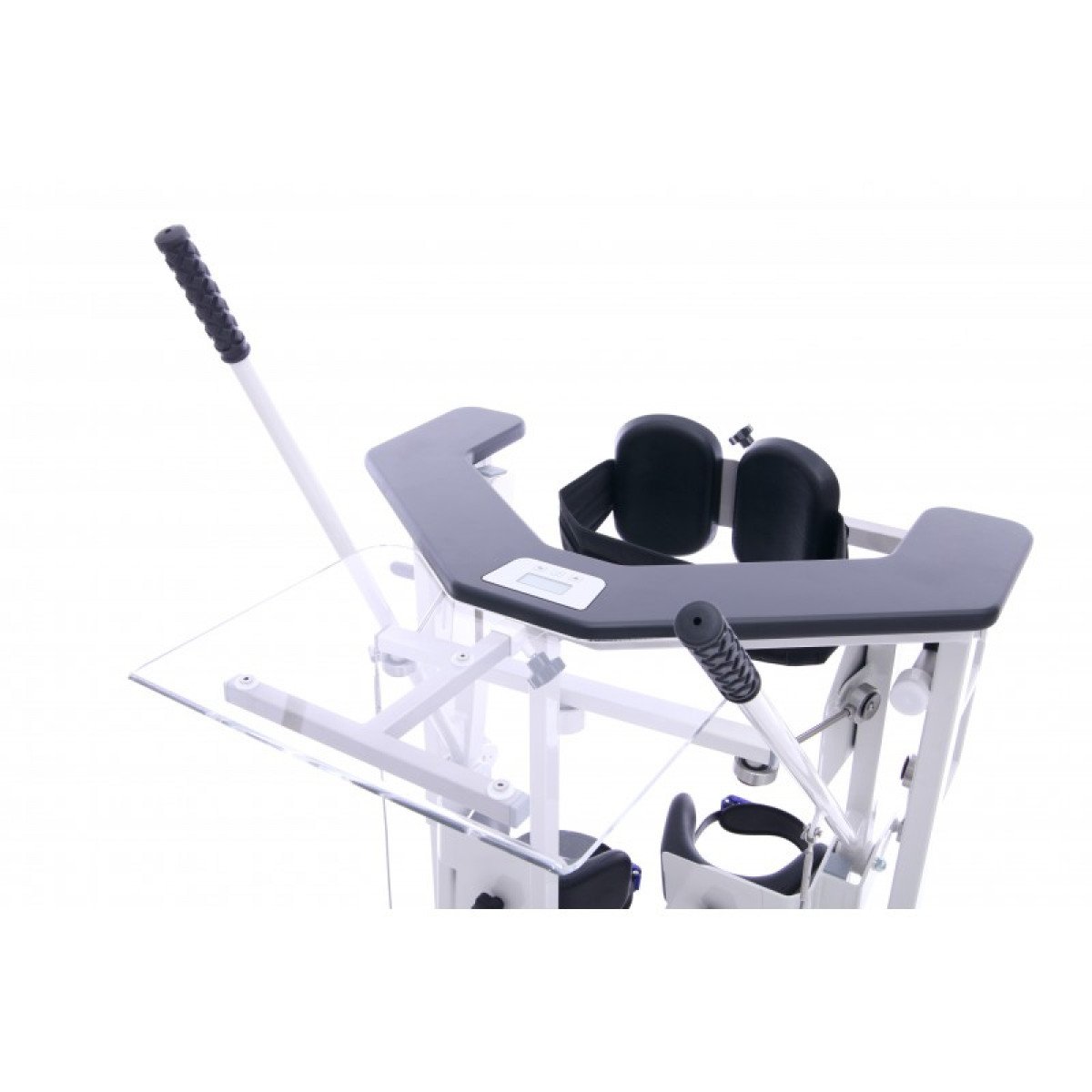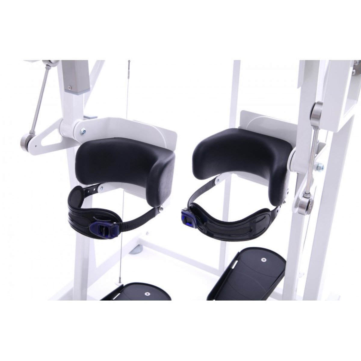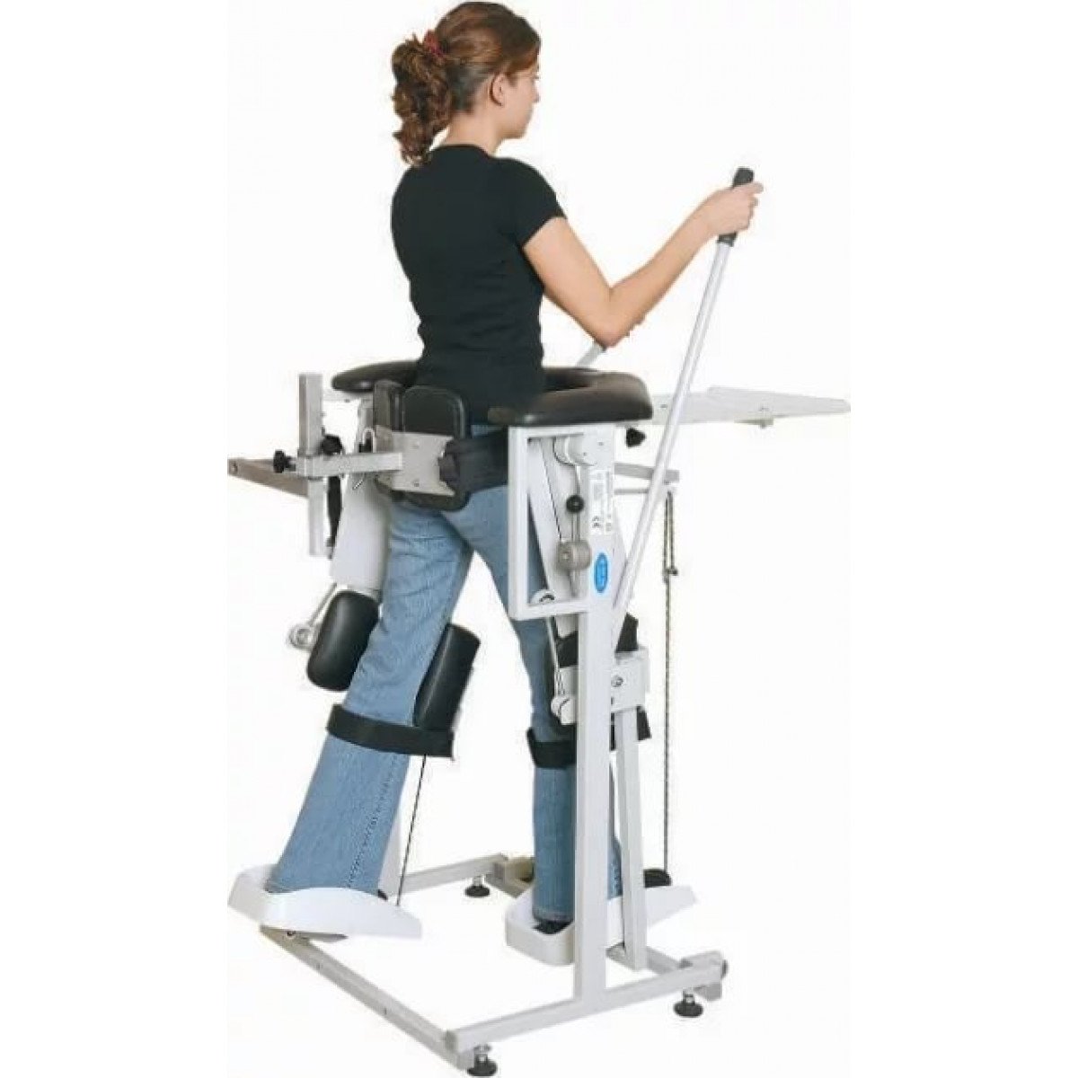 Для пациентов с повреждением шейного и верхнегрудного отдела спинного мозга предусмотрена дополнительная опора на уровне груди и с помощью инструктора или вертикализатора такие пациенты тоже могут занять вертикальное положение и выполнять реабилитационные упражнения.