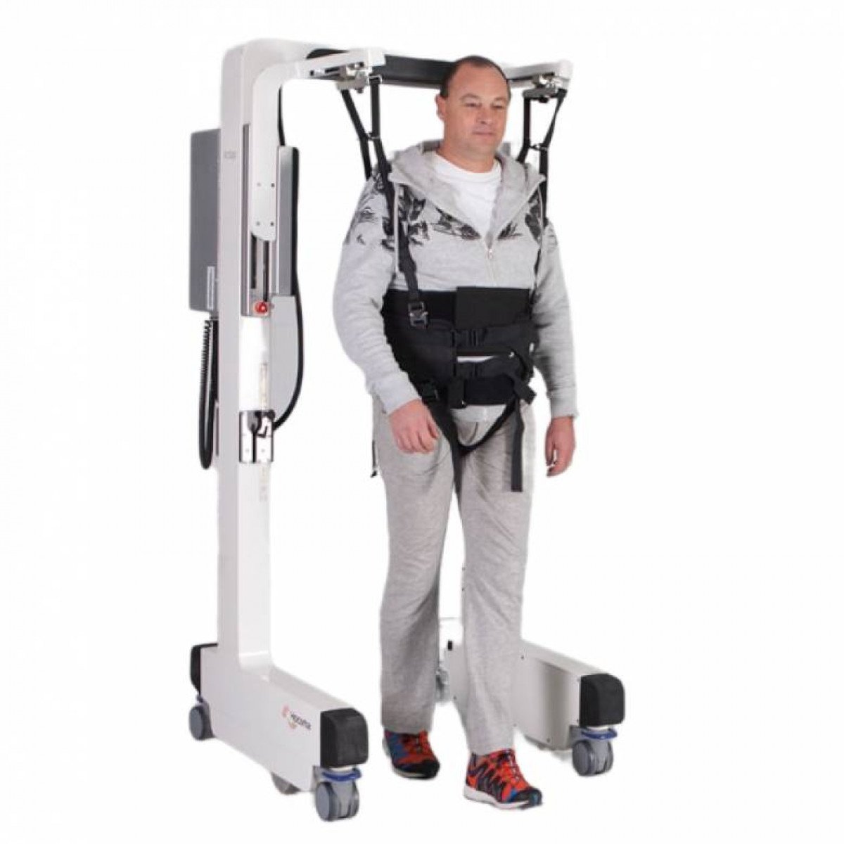 Система плавно разгружает вес пользователя и подходит для людей с разным уровнем физической подготовки, в том числе в период восстановления после травм, переломов и ортопедических операций. Электрический подъёмник помогает безопасно перейти из положения сидя в положение стоя, а встроенная защита автоматически останавливает систему при потере равновесия или спотыкании. Это снижает риски и позволяет сосредоточиться на самом процессе ходьбы.